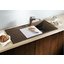 над столешницей — край модели выступает на несколько миллиметров, это удобно, так как подходит для любых поверхностей.