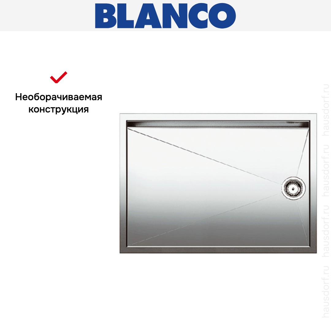 Обратите внимание на дизайнерские отличия мойки Бланко, которые помогут в создании идеальной кухни в вашем доме. Она выполнена в цвете нержавеющая сталь. Основной материал — нержавеющая сталь, он гарантирует надежность и долгие годы службы без повреждений.