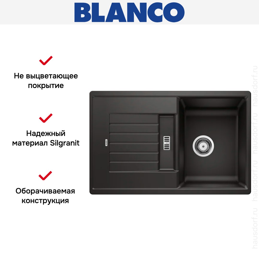 Мойка BLANCO ZIA 45 S Silgranit черный