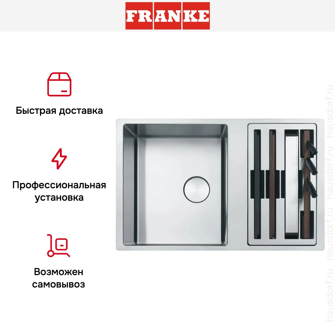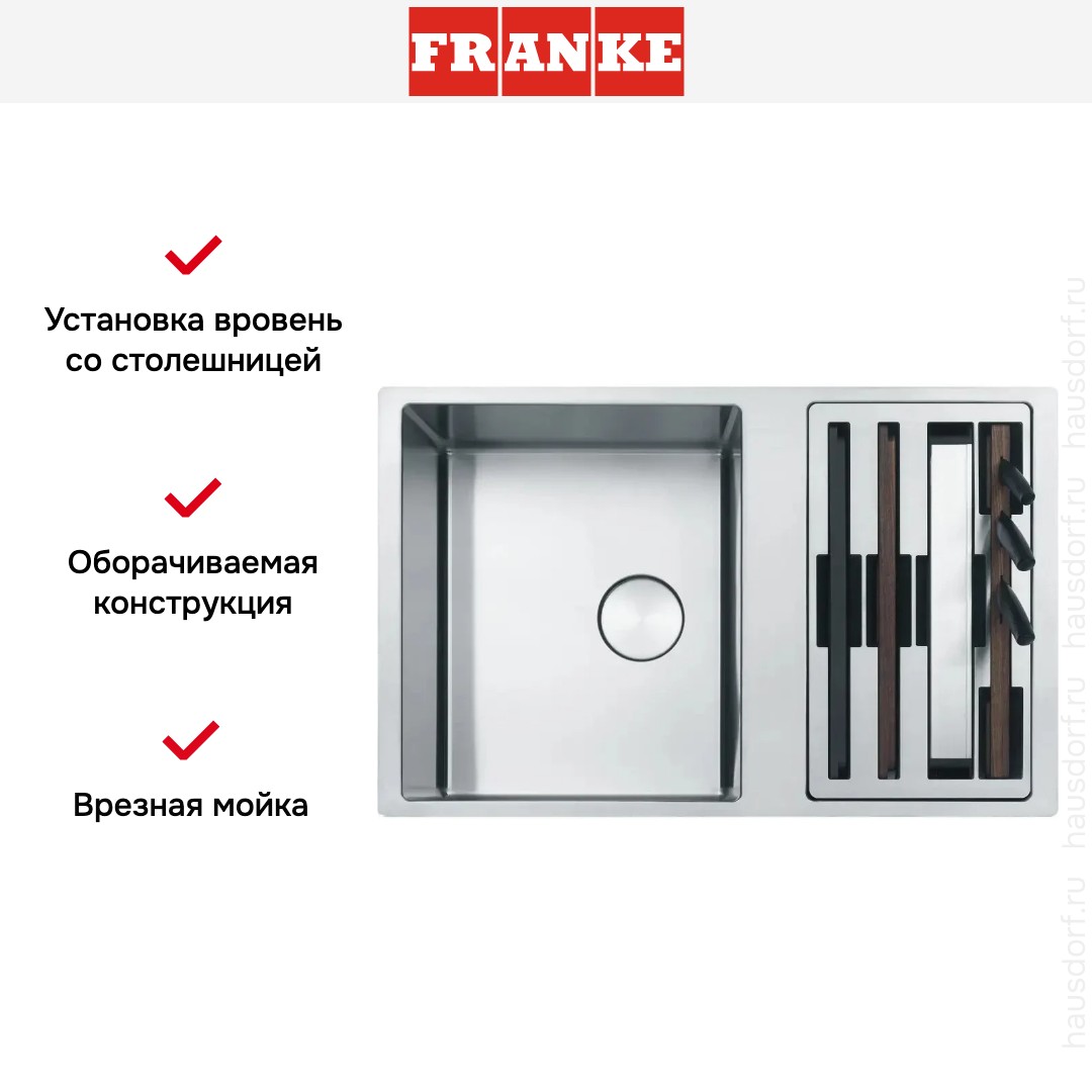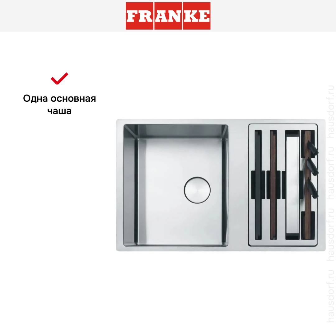 Мойка Franke BWX 120-41-27 из стали — вместительная и технологичная встраиваемая модель, разработанная для требовательных пользователей, которые ценят простор и эстетику на кухне. Прямоугольная форма мойки с внушительными габаритами 82×52 см обеспечивает большую рабочую зону, идеально подходящую для мытья крупногабаритной посуды, разделки продуктов или даже замачивания объёмных ёмкостей. Глубина чаши 52 см сводит к минимуму разбрызгивание воды и повышает комфорт при интенсивной эксплуатации.