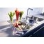 Накладная мойка — самая простая в установке и подключении. Она буквально «надевается» сверху кухонного шкафа вместо столешницы и может быть закреплена на готовой тумбе, без необходимости включать ее в проект на этапе дизайна. Ее можно легко самостоятельно подключить к коммуникациям, а также заменить в дальнейшем.