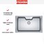 Особое внимание уделено деталям: внутренняя чаша имеет радиус скругления 5 см, а внешние кромки — 2,5 см. Эти плавные изгибы придают изделию утончённый вид и значительно облегчают уход, исключая скопление грязи в углах. Модель изготовлена из высококачественной нержавеющей стали и отличается прочностью, устойчивостью к коррозии, царапинам и перепадам температур. Матовая поверхность сохраняет эстетичный вид даже при интенсивной эксплуатации, эффективно маскируя мелкие следы и отпечатки.
