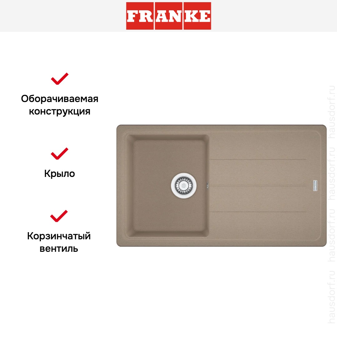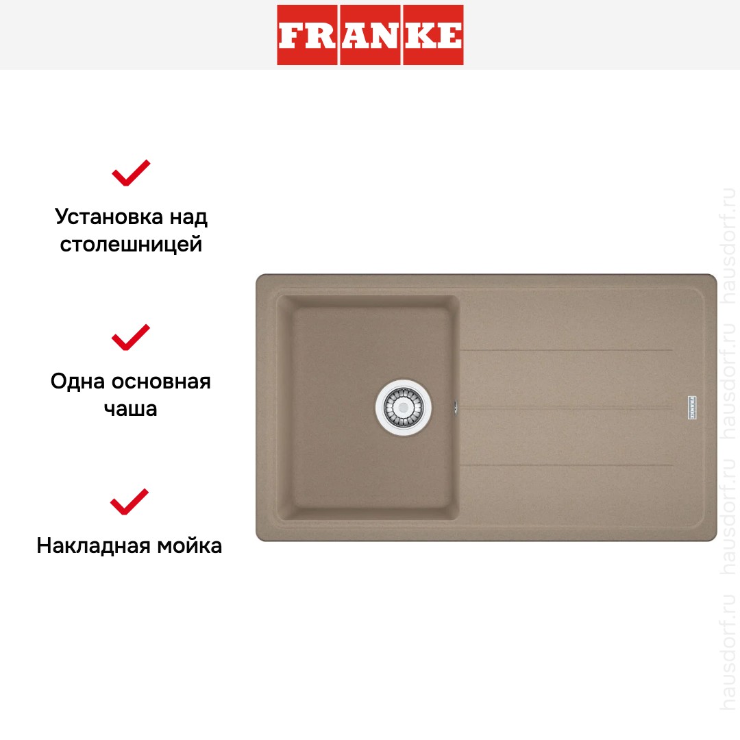 Мойка Franke BFG 611 86 Mindal. Это накладная прямоугольная модель в тёплом миндальном оттенке. Дизайн выполнен в линейке Basis, что подчёркивает строгую геометрию и лаконичность. Матовая поверхность создаёт спокойный визуальный акцент и легко вписывается в разные стили кухонь.