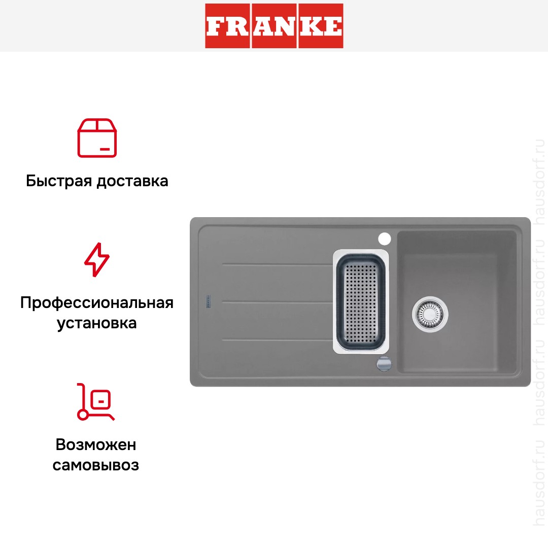 Обратите внимание на дизайнерские отличия мойки Франке, которые помогут в создании идеальной кухни в вашем доме. Она выполнена в цвете серебристый. Основной материал — фрагранит, он гарантирует надежность и долгие годы службы без повреждений. Крыло, расположенное слева или справа, является дополнительным рабочим пространством, на котором можно сушить посуду, разделывать мясо и нарезать овощи.