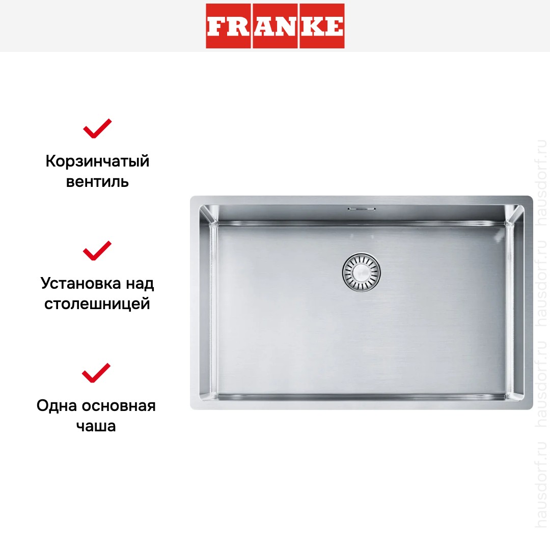 Мойка Franke BXX 210-68 из стали — вместительная и стильная встраиваемая модель, созданная для требовательных пользователей, ценящих простор и функциональность. Прямоугольная форма с размерами 72,5 × 45 см обеспечивает обширную рабочую зону, идеально подходящую для мытья крупногабаритной посуды, подготовки ингредиентов или даже разморозки продуктов. Глубина чаши 45 см сводит к минимуму разбрызгивание воды и повышает удобство ежедневного использования.