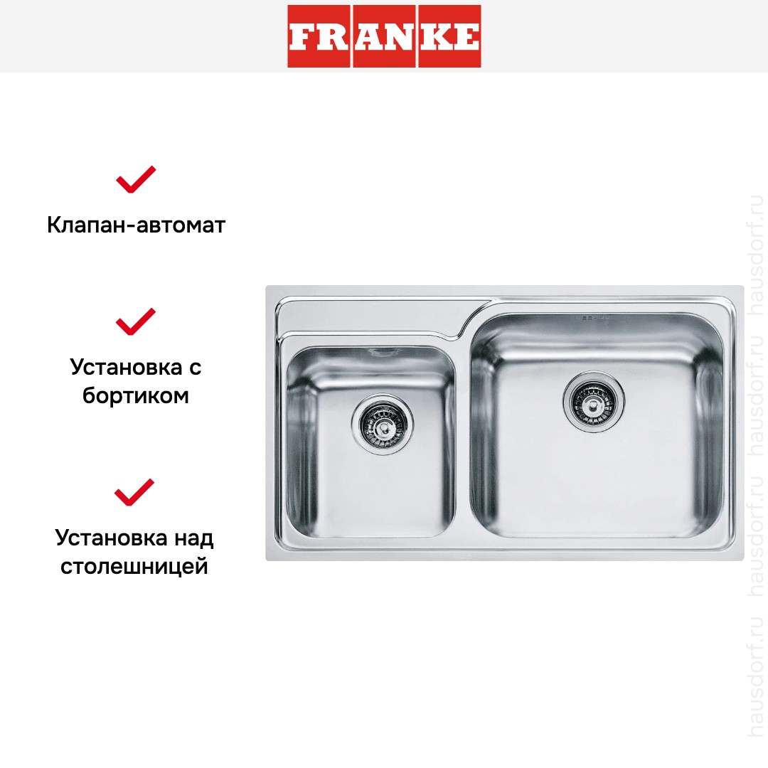 Мойка Franke GAX 620 — накладная модель прямоугольной формы с размерами 86×50 см и полированной поверхностью из нержавеющей стали в дизайне Galassia. Внешний вид лаконичный и современный, он хорошо впишется в интерьер с минималистичным или промышленным акцентом. Полированная текстура придаёт блеск и подчёркивает чистые линии, а цвет из нержавеющей стали остаётся нейтральным и универсальным.