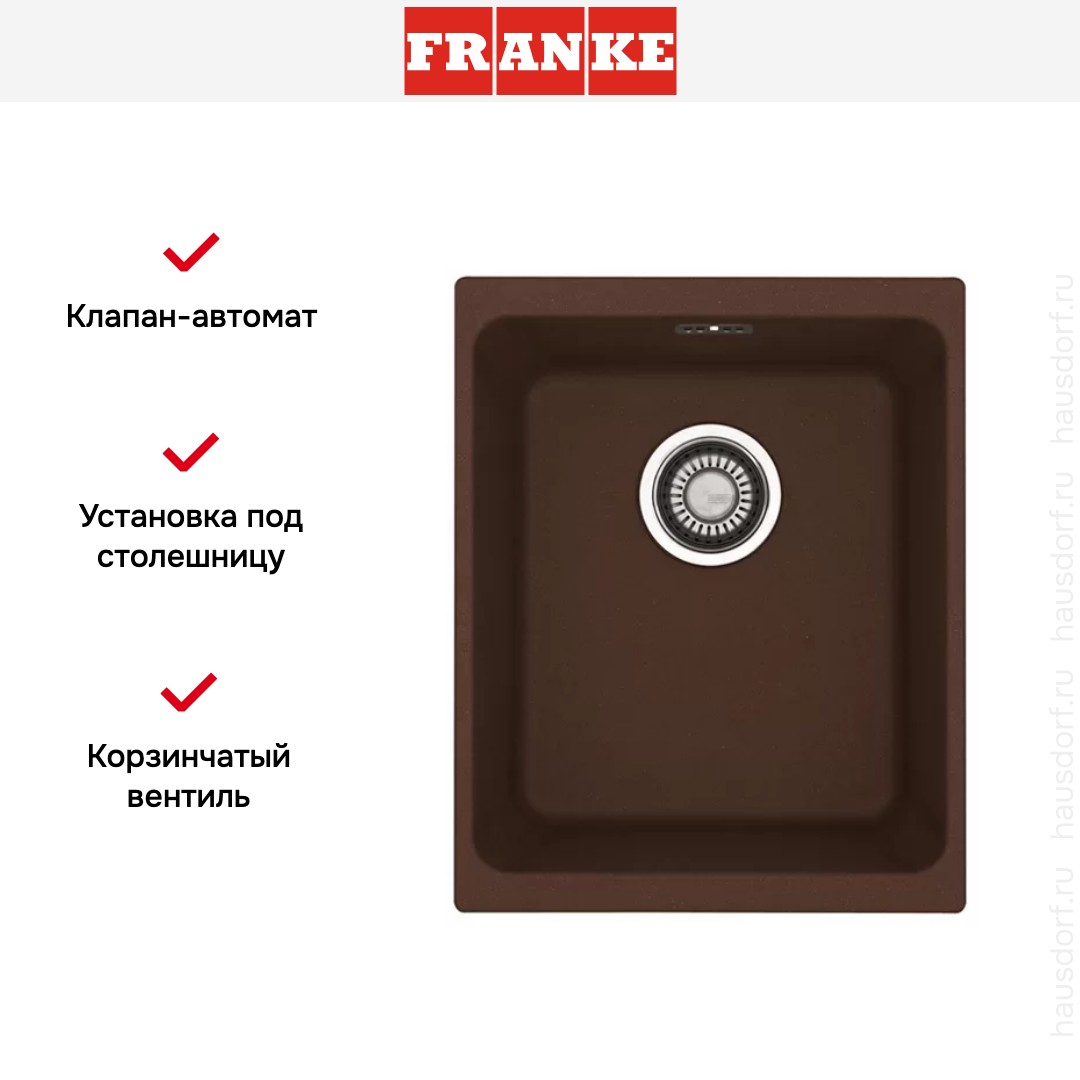 Обратите внимание на дизайнерские отличия мойки Франке, которые помогут в создании идеальной кухни в вашем доме. Она выполнена в цвете шоколад. Основной материал — фрагранит, он гарантирует надежность и долгие годы службы без повреждений.