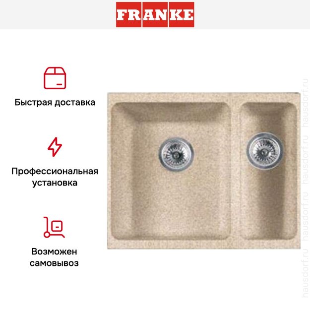 Обратите внимание на дизайнерские отличия мойки Франке, которые помогут в создании идеальной кухни в вашем доме. Она выполнена в цвете бежевый. Основной материал — фрагранит, он гарантирует надежность и долгие годы службы без повреждений.