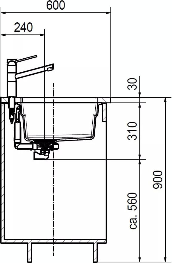 База — это шкаф, в который вы планируете устанавливать мойку. Данный параметр обозначает минимальную ширину между боковые стенками. Именно столько нужно, чтобы правильно разместить всю сантехнику.