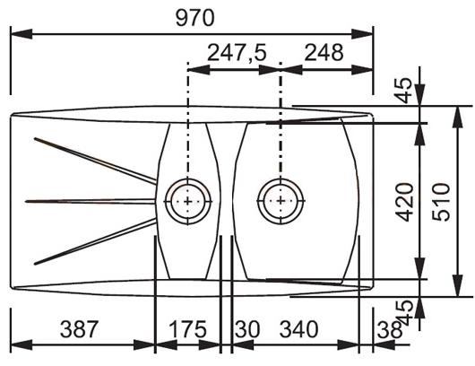 Крыло мойки — это горизонтальная рабочая поверхность, которая располагается сбоку от чаши: слева, справа или с двух сторон, и изготавливается из того же материала, что и вся мойка. Поверхность крыла может иметь желобки для удобного стекания воды в чашу. Мойка с крылом требует больше места для установки.