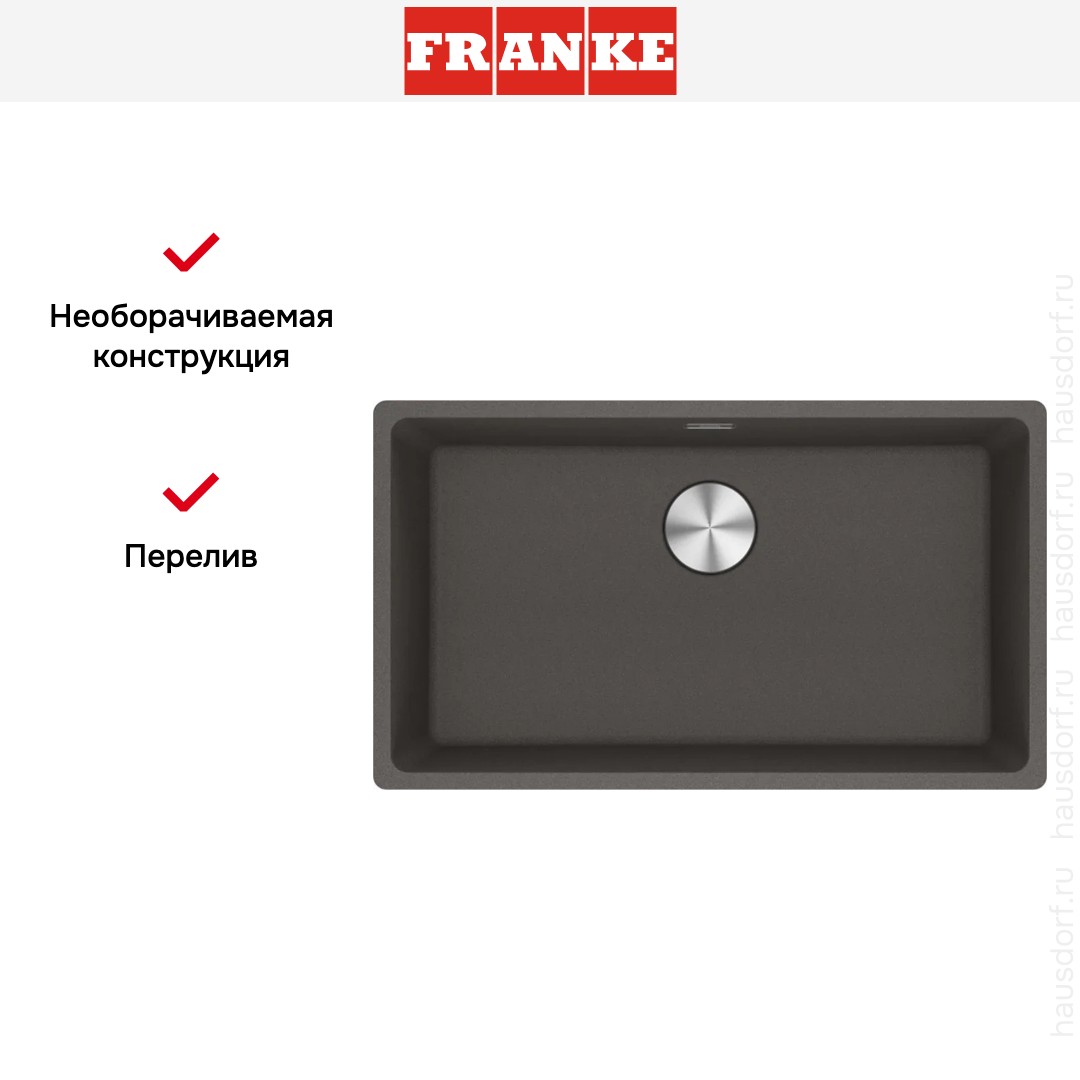 Мойка Franke MRG 110-72 грифельно-серого цвета — вместительная и стильная модель, созданная для современных кухонь, где ценятся простор, функциональность и сдержанная эстетика. Эта прямоугольная врезная конструкция монтируется под столешницу, обеспечивая плавный переход от рабочей поверхности к краю чаши и упрощая уход за зоной стыка. Её габариты — 75,3×43,3 см — идеально соответствуют широкому нижнему модулю шириной 80 см, а для установки требуется подготовить проём размером 72×40 см.