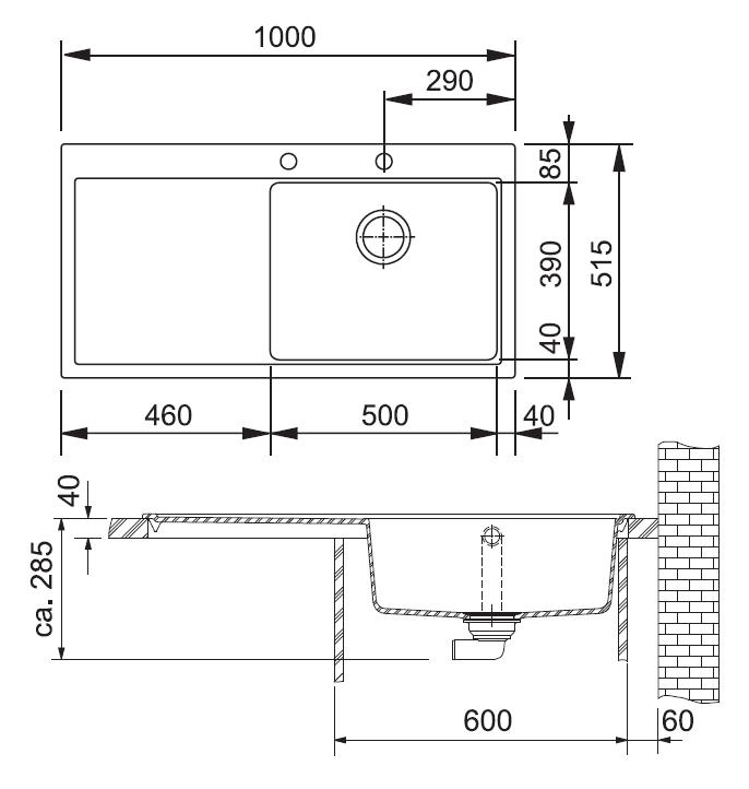 Необорачиваемую мойку можно установить только в одном положении — поэтому при наличии крыла необходимо заранее продумать, как вы хотите ее разместить. Модель имеет одно отверстие для смесителя, может быть разной формы — круглой, квадратной, прямоугольной и нестандартной. Изготавливаются из разных материалов.