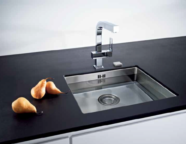Необорачиваемую мойку можно установить только в одном положении — поэтому при наличии крыла необходимо заранее продумать, как вы хотите ее разместить. Модель имеет одно отверстие для смесителя, может быть разной формы — круглой, квадратной, прямоугольной и нестандартной. Изготавливаются из разных материалов.