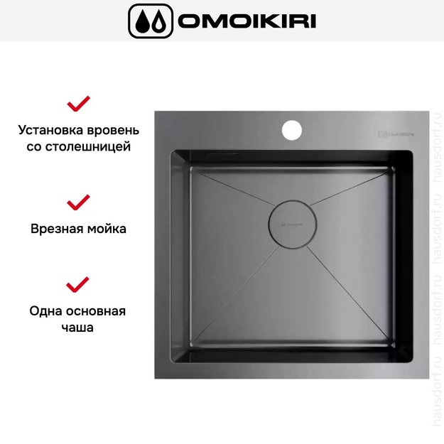 Обратите внимание на дизайнерские отличия мойки Омойкири, которые помогут в создании идеальной кухни в вашем доме. Она выполнена в цвете вороненая сталь. Основной материал — нержавеющая сталь, он гарантирует надежность и долгие годы службы без повреждений.