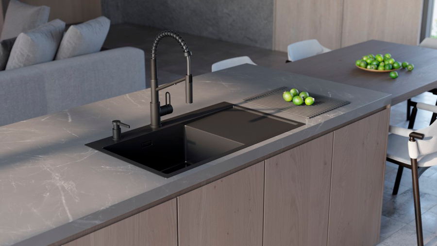 вровень со столешницей — создается ощущение бесшовного пространства, а если мойка сделана из того же материала, то и единого дизайна;