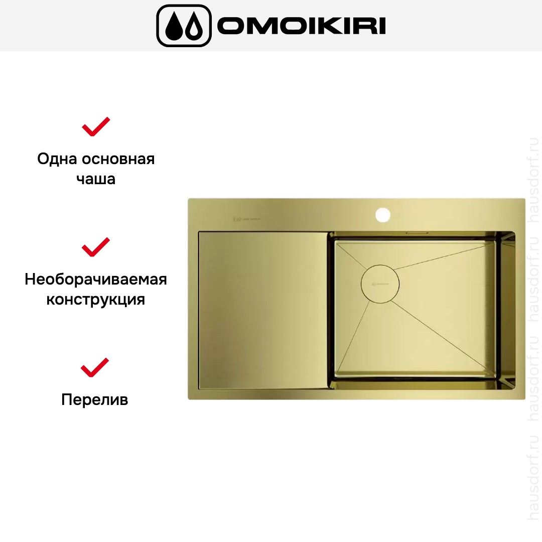 Мойка Omoikiri AKISAME 86 SIDE LG-R светлое золото крыло слева