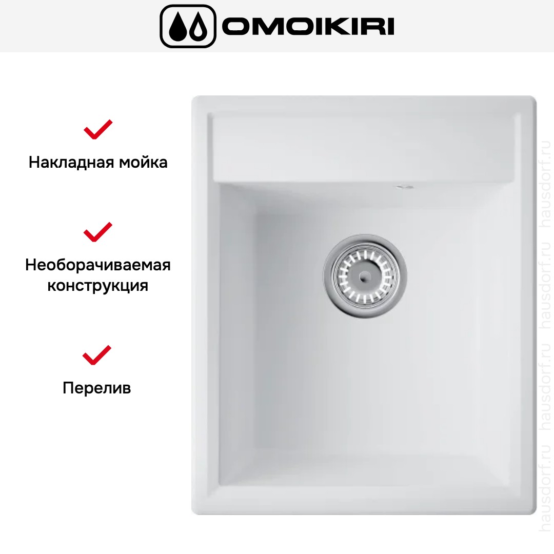 Необорачиваемую мойку можно установить только в одном положении — поэтому при наличии крыла необходимо заранее продумать, как вы хотите ее разместить. Модель имеет одно отверстие для смесителя, может быть разной формы — круглой, квадратной, прямоугольной и нестандартной. Изготавливаются из разных материалов.