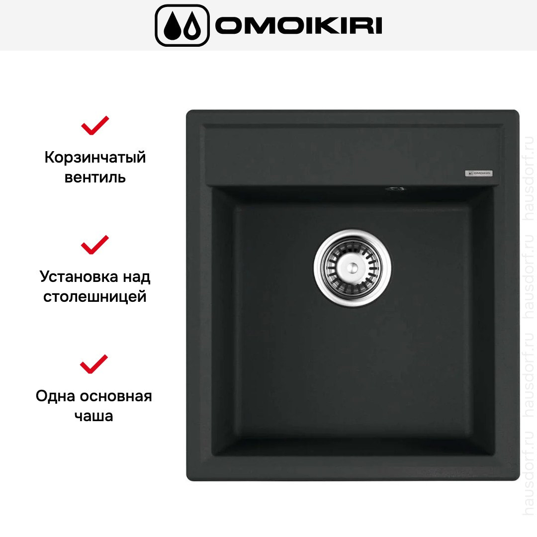 Накладная мойка Omoikiri — отличный выбор для тех, кто хочет создать гармоничное пространство с удобной сантехникой. простой в установке. Преимущество такой конструкции: легко подобрать практически к любой кухне и не придется демонтировать вместе с тумбой при ремонте или перестановке остальной мебели. Данная модель имеет стандартную форму, поэтому подходит большинству пользователей. Устанавливается над столешницей: это самый простой способ монтажа, зачастую с ним можно справиться даже без специалистов, главное — правильно рассчитать размеры ниши.