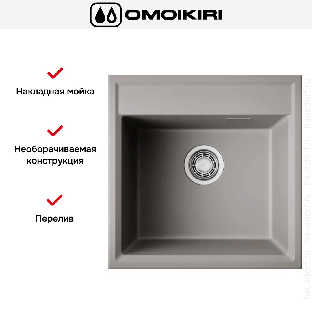 Мойка OMOIKIRI Daisen 51 GR представлена в сдержанном сером исполнении и сочетает в себе аккуратный квадратный силуэт и продуманную эргономику, выгодно подчеркнув современный интерьер и сэкономив место на рабочей поверхности: габариты изделия всего 51×51 см делают изделие оптимальным решением для компактных кухонь, а накладной способ установки позволяет быстро монтировать изделие над столешницей без сложных переделок. Конструкция выполнена как необорачиваемая, что обеспечивает стабильность формы и точность сопряжения с фронтом мебели при ширине базы 60 см; монтажное отверстие рассчитано на размеры 55.4×49.4 см (ширина 55.4 см, глубина 49.4 см), поэтому при подготовке столешницы вы будете уверены в совместимости и ровном прилегании. Центром композиции служит одна основная чашa, её внутренние размеры 44×37 см и вертикальная глубина 19.5 см создают удобный объем для мытья крупной посуды, при этом предусмотренный перелив защищает от переполнения, а грамотно расположенные радиусы облегчают уход. Прочный композит ArtGranit обеспечивает стойкость к механическим воздействиям и эстетическую однородность поверхности, толщина стенки 10 мм придает ощутимую массивность и надежность, а метод производства — литье — гарантирует отсутствие швов и равномерность структуры материала. В комплекте предусмотрен корзинчатый вентиль, упрощающий слив и предотвращающий попадание крупных частиц в трубопровод, фиксирующие зажимы облегчают и ускоряют монтаж, а поставляемый сифон завершает установочный набор, исключая необходимость докупки базовых комплектующих. Практичность дополнена высокой функциональностью: квадратная форма чаши рационально использует внутренний объем, облегчая размещение посуды, а гладкая матовая поверхность серого оттенка скрывает мелкие следы использования и придает рабочей зоне аккуратный, спокойный характер. Такое сочетание размеров, материалов и продуманных деталей делает модель привлекательной для тех, кто ценит компактность, надежность и простоту ухода; изделие одинаково хорошо подойдет для монтажа в новых кухонных проектах и при обновлении существующей обстановки, сочетаясь с различными по стилю столешницами и гарнитурами. Наличие всех необходимых элементов для установки и эксплуатации минимизирует время на монтажные работы и упрощает ввод в эксплуатацию, а продуманная геометрия обеспечивает удобный доступ к рабочей зоне и комфорт даже при регулярном интенсивном использовании, что делает покупку выгодной инвестицией в повседневный комфорт и чистоту кухни.