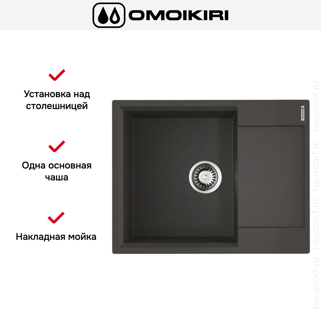 Накладная мойка Omoikiri — отличный выбор для тех, кто хочет создать гармоничное пространство с удобной сантехникой. простой в установке. Преимущество такой конструкции: легко подобрать практически к любой кухне и не придется демонтировать вместе с тумбой при ремонте или перестановке остальной мебели. Данная модель имеет стандартную форму, поэтому подходит большинству пользователей. Устанавливается над столешницей: это самый простой способ монтажа, зачастую с ним можно справиться даже без специалистов, главное — правильно рассчитать размеры ниши.