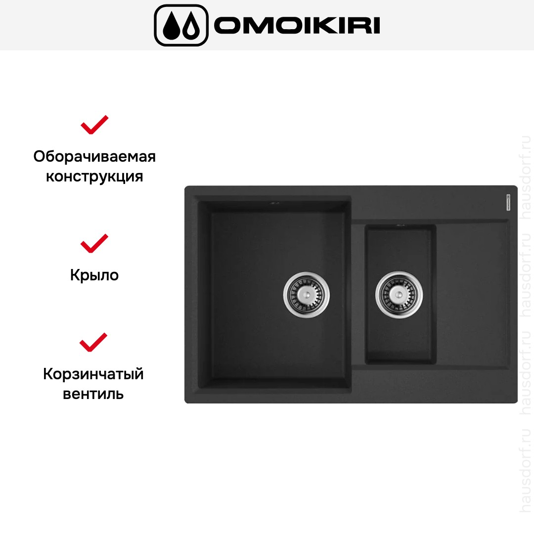 Обратите внимание на дизайнерские отличия мойки Омойкири, которые помогут в создании идеальной кухни в вашем доме. Она выполнена в цвете черный. Крыло, расположенное слева или справа, является дополнительным рабочим пространством, на котором можно сушить посуду, разделывать мясо и нарезать овощи.