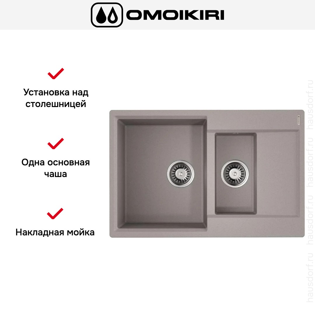 Обратите внимание на дизайнерские отличия мойки Омойкири, которые помогут в создании идеальной кухни в вашем доме. Она выполнена в цвете Серый Ленинград. Крыло, расположенное слева или справа, является дополнительным рабочим пространством, на котором можно сушить посуду, разделывать мясо и нарезать овощи.