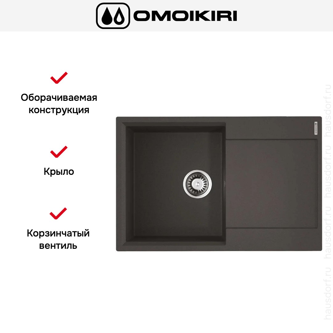 Обратите внимание на дизайнерские отличия мойки Омойкири, которые помогут в создании идеальной кухни в вашем доме. Она выполнена в цвете черный. Крыло, расположенное слева или справа, является дополнительным рабочим пространством, на котором можно сушить посуду, разделывать мясо и нарезать овощи.