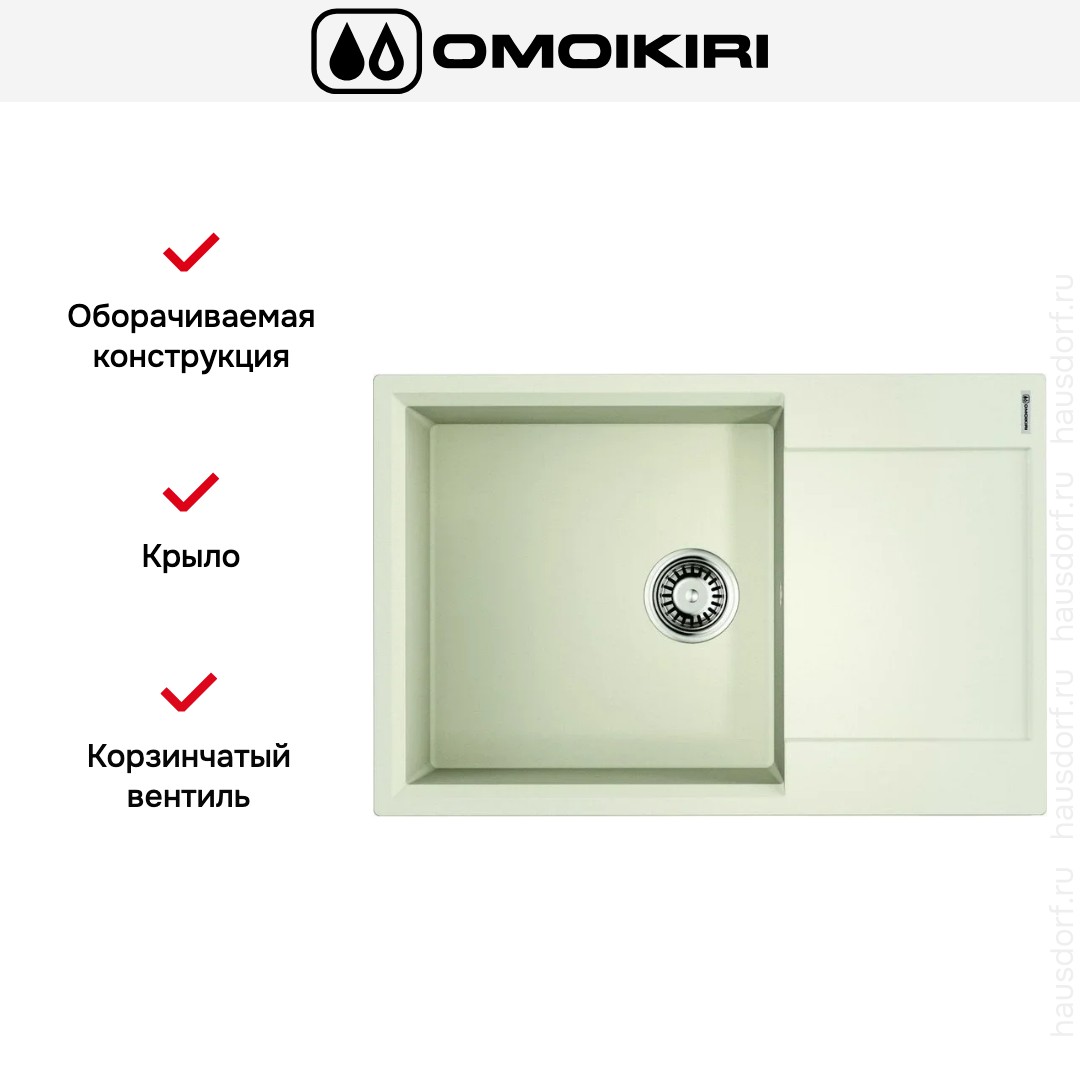 Обратите внимание на дизайнерские отличия мойки Омойкири, которые помогут в создании идеальной кухни в вашем доме. Она выполнена в цвете пастила. Крыло, расположенное слева или справа, является дополнительным рабочим пространством, на котором можно сушить посуду, разделывать мясо и нарезать овощи.