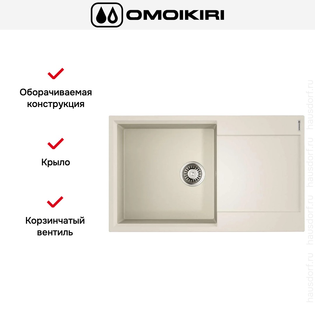 Мойка OMOIKIRI Daisen 86 PA — накладная прямоугольная модель длиной 86 см и глубиной 51 см, выполненная в мягком пастельном оттенке. Ее спокойная палитра легко вписывается в современный интерьер и смягчает общую кухонную гамму.