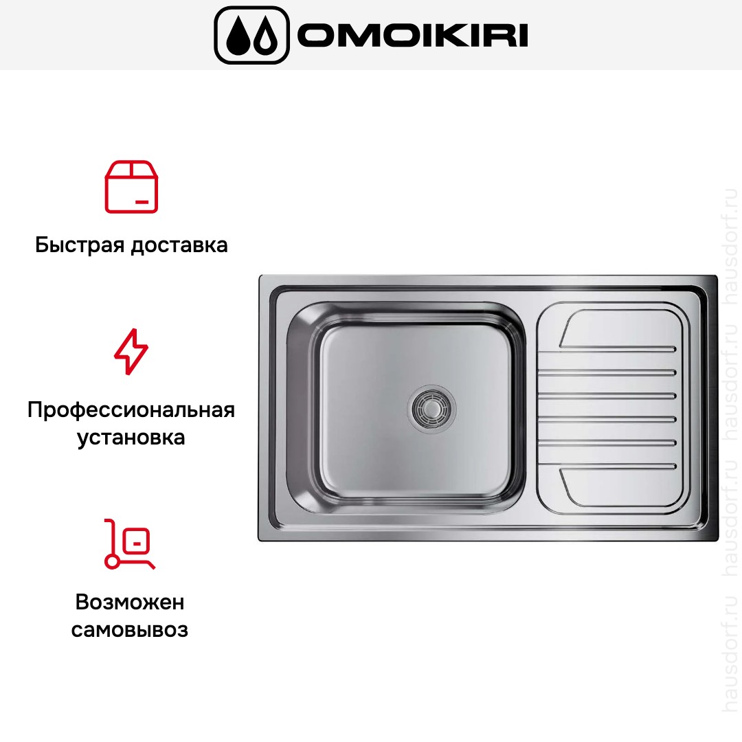 Накладная мойка Omoikiri — отличный выбор для тех, кто хочет создать гармоничное пространство с удобной сантехникой. простой в установке. Преимущество такой конструкции: легко подобрать практически к любой кухне и не придется демонтировать вместе с тумбой при ремонте или перестановке остальной мебели. Данная модель имеет стандартную форму, поэтому подходит большинству пользователей. Устанавливается над столешницей: это самый простой способ монтажа, зачастую с ним можно справиться даже без специалистов, главное — правильно рассчитать размеры ниши.
