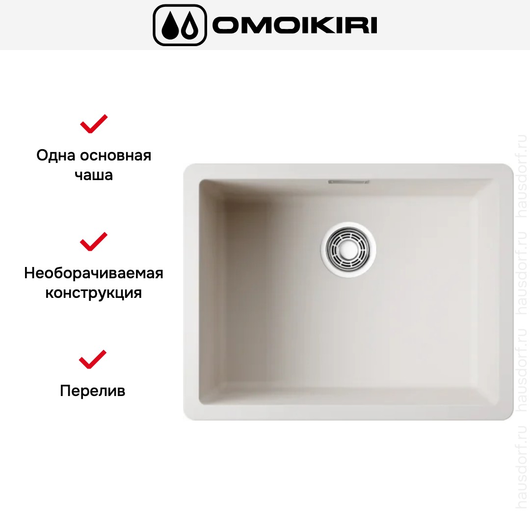 Врезная мойка Omoikiri — отличный выбор для тех, кто хочет создать гармоничное кухонное пространство с полностью вписывающейся в него сантехникой. Преимущество такой конструкции — плотное прилегание к столешнице, так как вырез подбирается индивидуально под габариты модели. Под стыки не попадает вода, поэтому срок службы значительно увеличивается, пользоваться ей удобно и приятно. Данная модель имеет стандартную форму, поэтому подходит большинству пользователей. Устанавливается под столешницу, благодаря чему не остается стыков, в которых копились бы загрязнения, а также увеличивается рабочая глубина.