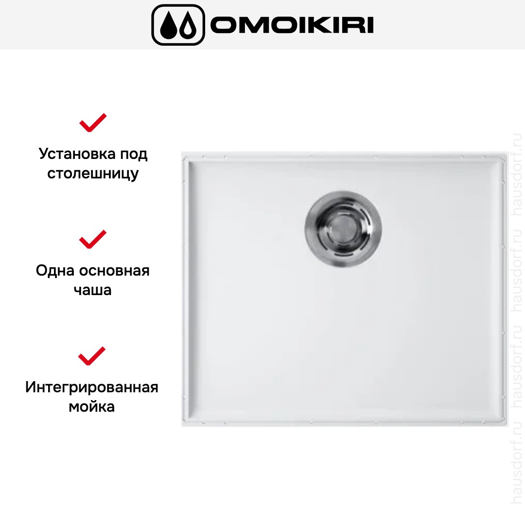 Выглядит лаконично: прямоугольная форма, пропорции 48.6×40.6 см, универсальный белый цвет. Чистые линии и ровные углы позволяют вписать изделие в спокойный интерьер, не перетягивая внимание. Интеграция под столешницу подчеркивает единый контур рабочей поверхности, а компактный формат не перегружает зону приготовления.