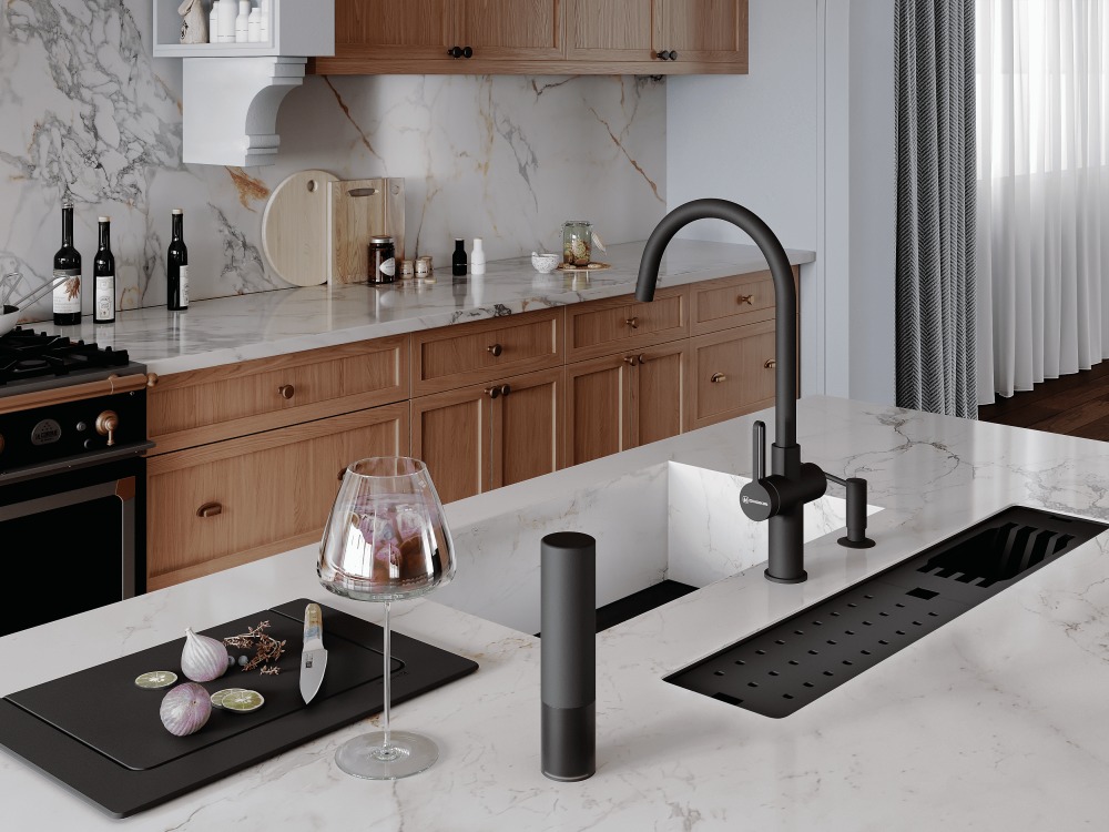 вровень со столешницей — создается ощущение бесшовного пространства, а если мойка сделана из того же материала, то и единого дизайна;