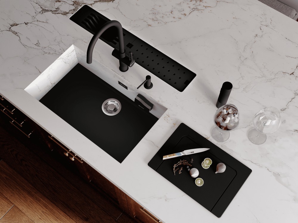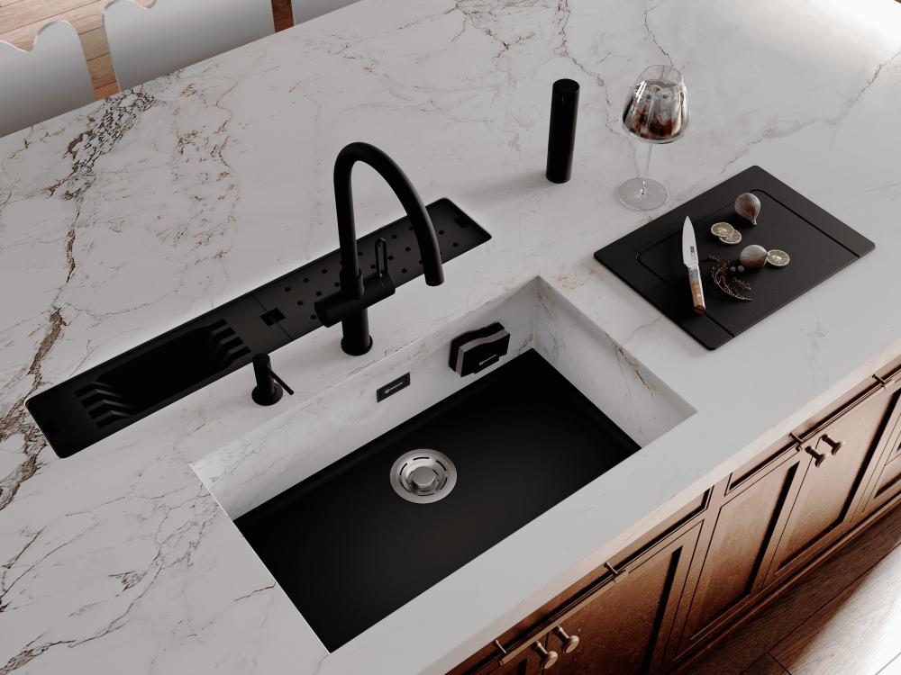 Для создания бесшовного дизайна кухни или ванной можно интегрировать мойку в столешницу так, чтобы создавалось ощущение единого пространства. Такие модели устанавливаются под столешницу и сделаны из такого же материала. Встроить подобную мойку в уже готовую кухню сложно, обычно их выбирают на этапе продумывания интерьера.