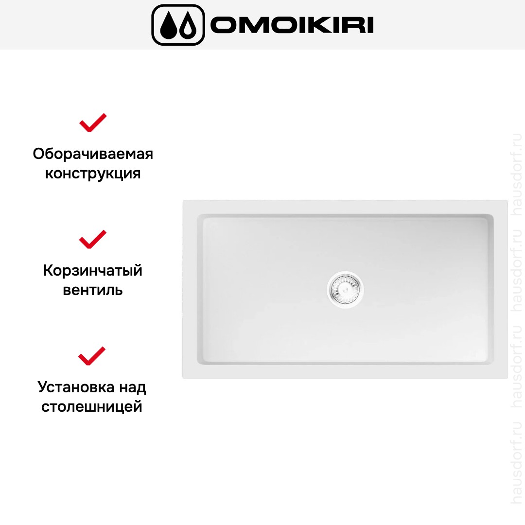 Мойка Omoikiri Mikura 76 WH привлекает сдержанным дизайном и высоким качеством исполнения. Ее прямоугольная форма и белоснежное покрытие создают аккуратный вид в любой кухне. Лаконичные линии и ровные кромки подчеркивают современный интерьер и позволяют легко сочетать изделие с разной столешницей.