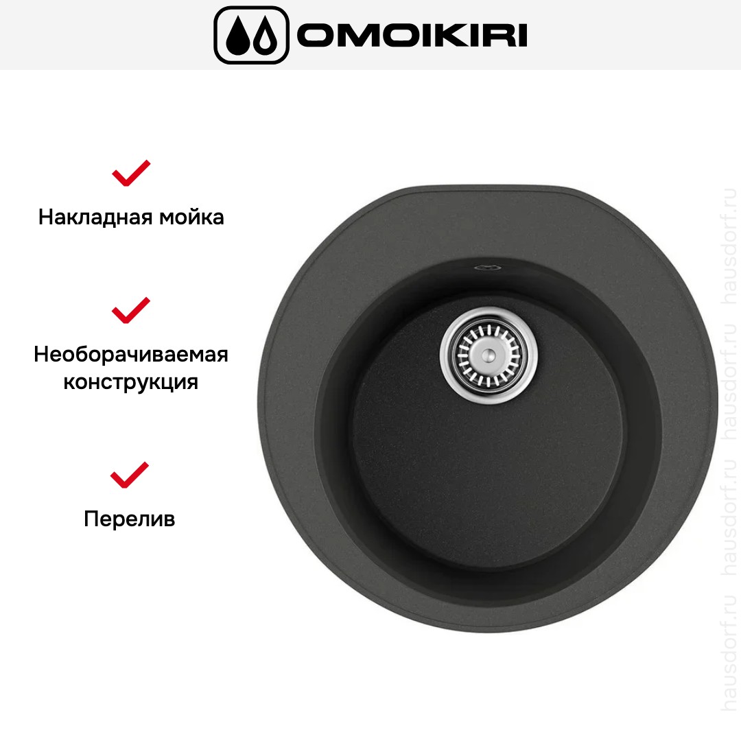 Круглая форма и продуманная глубина создают эргономичную рабочую зону, где легко манипулировать посудой и продуктами. Такой вариант подходит для компактных кухонь, островных решений и зон подготовки напитков. Наличие перелива и корзинчатого вентиля делает модель универсальной для интенсивного домашнего использования.