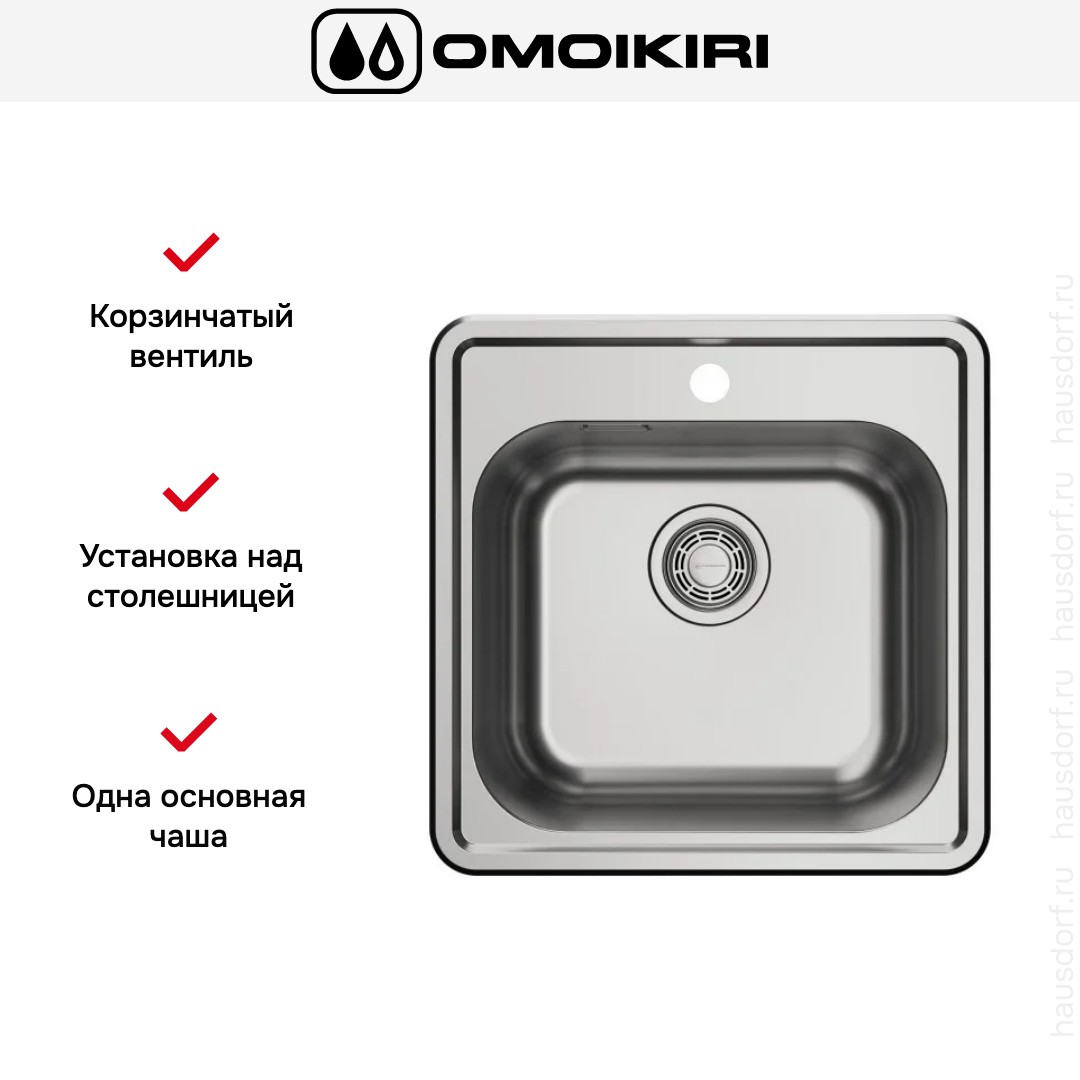 Мойка OMOIKIRI Notoro 48 SI Matt — накладная квадратная модель в матовом серебристом исполнении, созданная для компактных и продуманных кухонь. Ее лаконичная геометрия вписывается в современные интерьеры и не перегружает рабочую зону при ограниченном пространстве. Мягкий матовый оттенок скрывает следы воды и отпечатки, что облегчает уход и сохраняет аккуратный вид надолго.