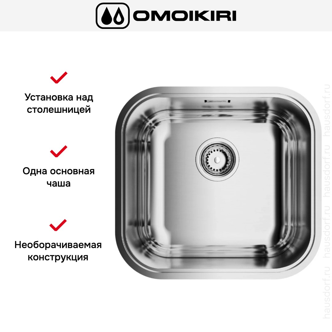 Врезная мойка Omoikiri — отличный выбор для тех, кто хочет создать гармоничное кухонное пространство с полностью вписывающейся в него сантехникой. Преимущество такой конструкции — плотное прилегание к столешнице, так как вырез подбирается индивидуально под габариты модели. Под стыки не попадает вода, поэтому срок службы значительно увеличивается, пользоваться ей удобно и приятно. Данная модель имеет стандартную форму, поэтому подходит большинству пользователей. Устанавливается под столешницу, благодаря чему не остается стыков, в которых копились бы загрязнения, а также увеличивается рабочая глубина. Устанавливается над столешницей: это самый простой способ монтажа, зачастую с ним можно справиться даже без специалистов, главное — правильно рассчитать размеры ниши.