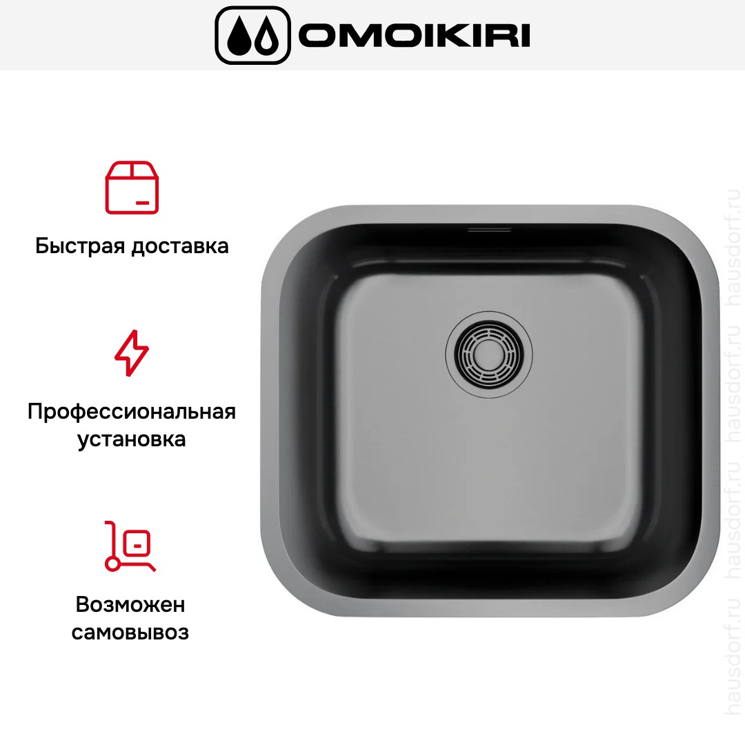 Выглядит как компактная и строгая кухонная секция прямоугольно-квадратной формы с габаритами 49×44 см, выполненная в оттенке вороненой стали. Четкие линии и плавные закругления радиусом 8 см придают модели выразительность, а PVD-покрытие формирует темный металлический тон и дополнительную защитную пленку. Конструкция не предусматривает переворачивания, поэтому ориентация чаши фиксирована и отражает продуманную компоновку рабочей зоны.