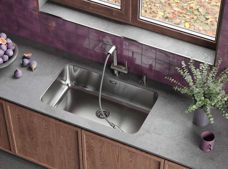 под столешницу — мойка расположена чуть ниже рабочей поверхности для лучшей герметизации;