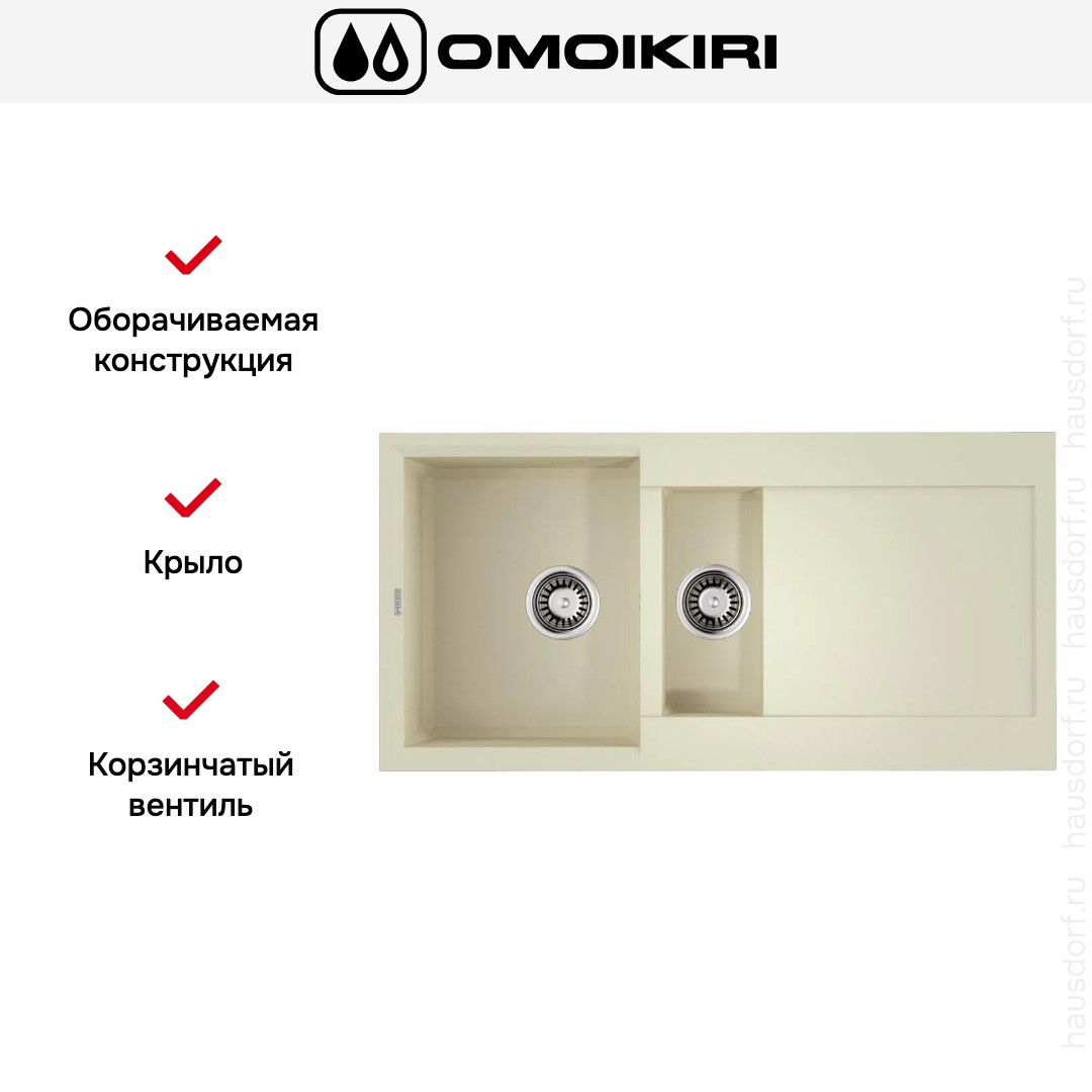 Обратите внимание на дизайнерские отличия мойки Омойкири, которые помогут в создании идеальной кухни в вашем доме. Она выполнена в цвете ваниль. Крыло, расположенное является дополнительным рабочим пространством, на котором можно сушить посуду, разделывать мясо и нарезать овощи.