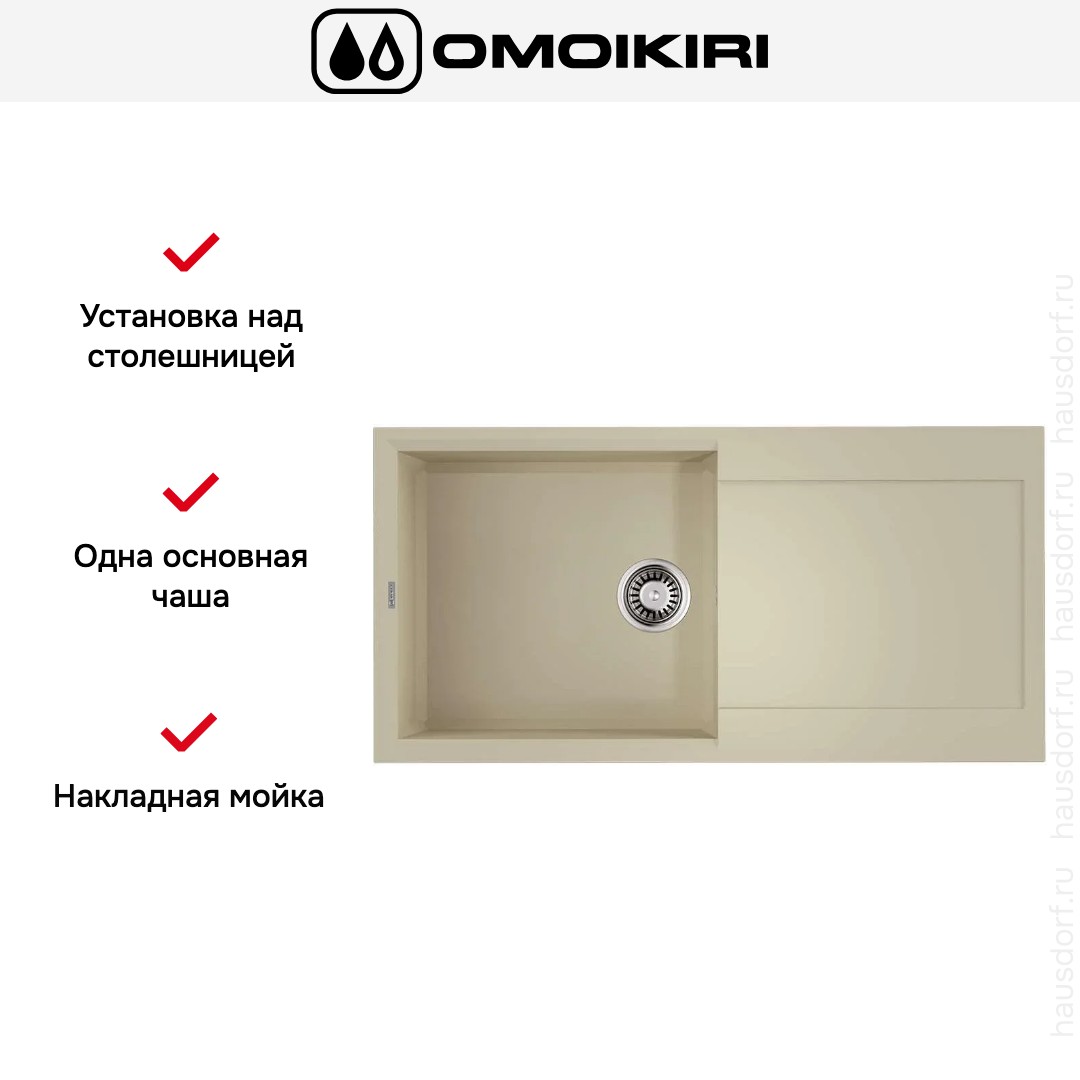 Мойка Omoikiri Sakaime 100 BE — накладная прямоугольная модель в мягком ванильном оттенке, выполненная литьём из композитного материала TetoGranit. Её ровные геометрические линии создают сдержанный и современный образ, который гармонично впишется в кухню любого стиля: от классического до индустриального. Практичное крыло рядом с чашей даёт удобную рабочую поверхность для сушки посуды или временной раскладки продуктов. Перелив защищает от случайного переполнения при незакрытом кране, а толщина стенок 10 мм обеспечивает солидный внешний вид и дополнительную прочность.