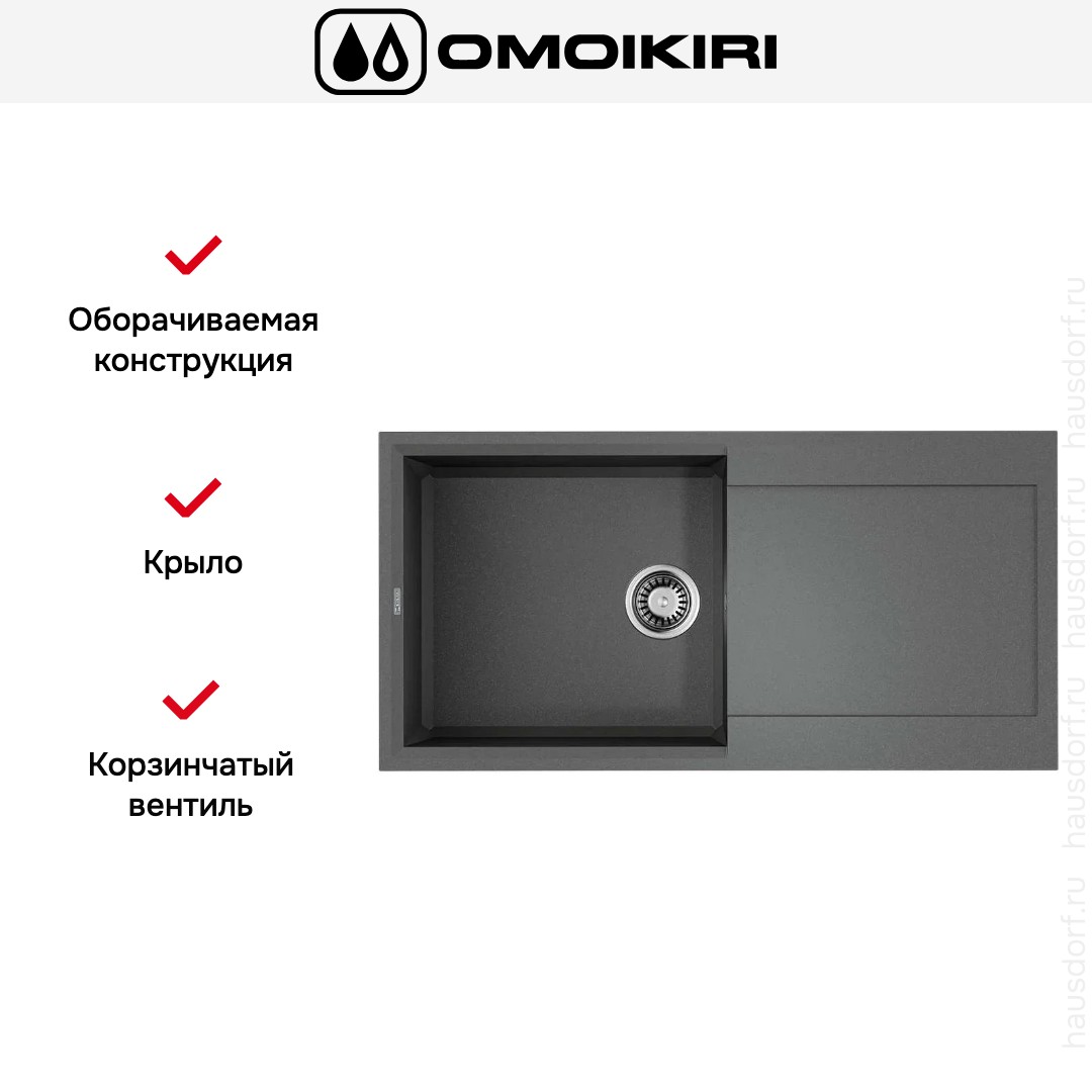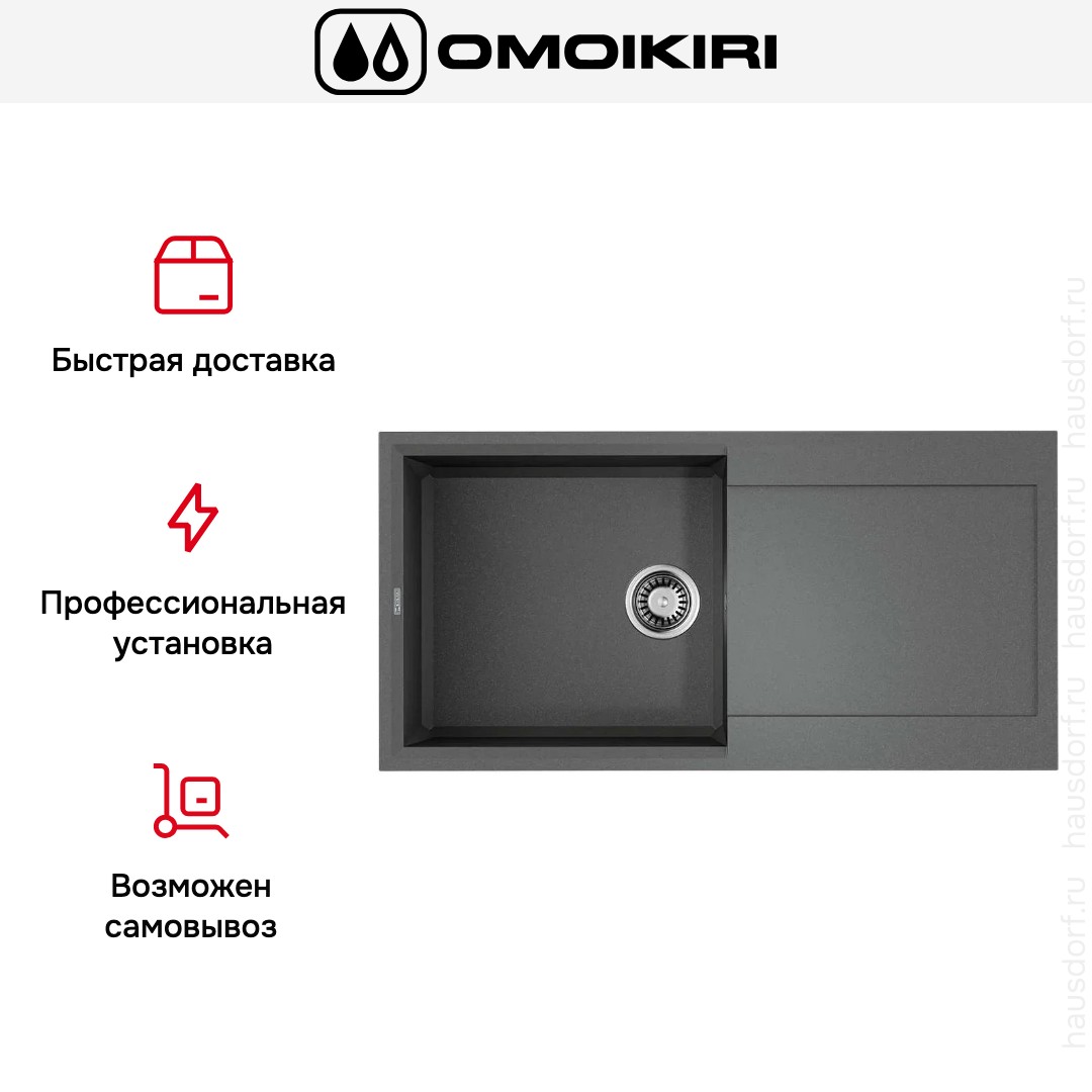Мойка OMOIKIRI Sakaime 100 GR представляет собой накладную прямоугольную модель с размерами 10050 см, выполненную в стильном цвете «Серый Ленинград». Ее широкие габариты делают рабочую зону удобной для любой активности на кухне. Модель устанавливается над столешницей и смотрится как эффектный акцент интерьера, сочетая строгие линии и мягкую текстуру поверхности.