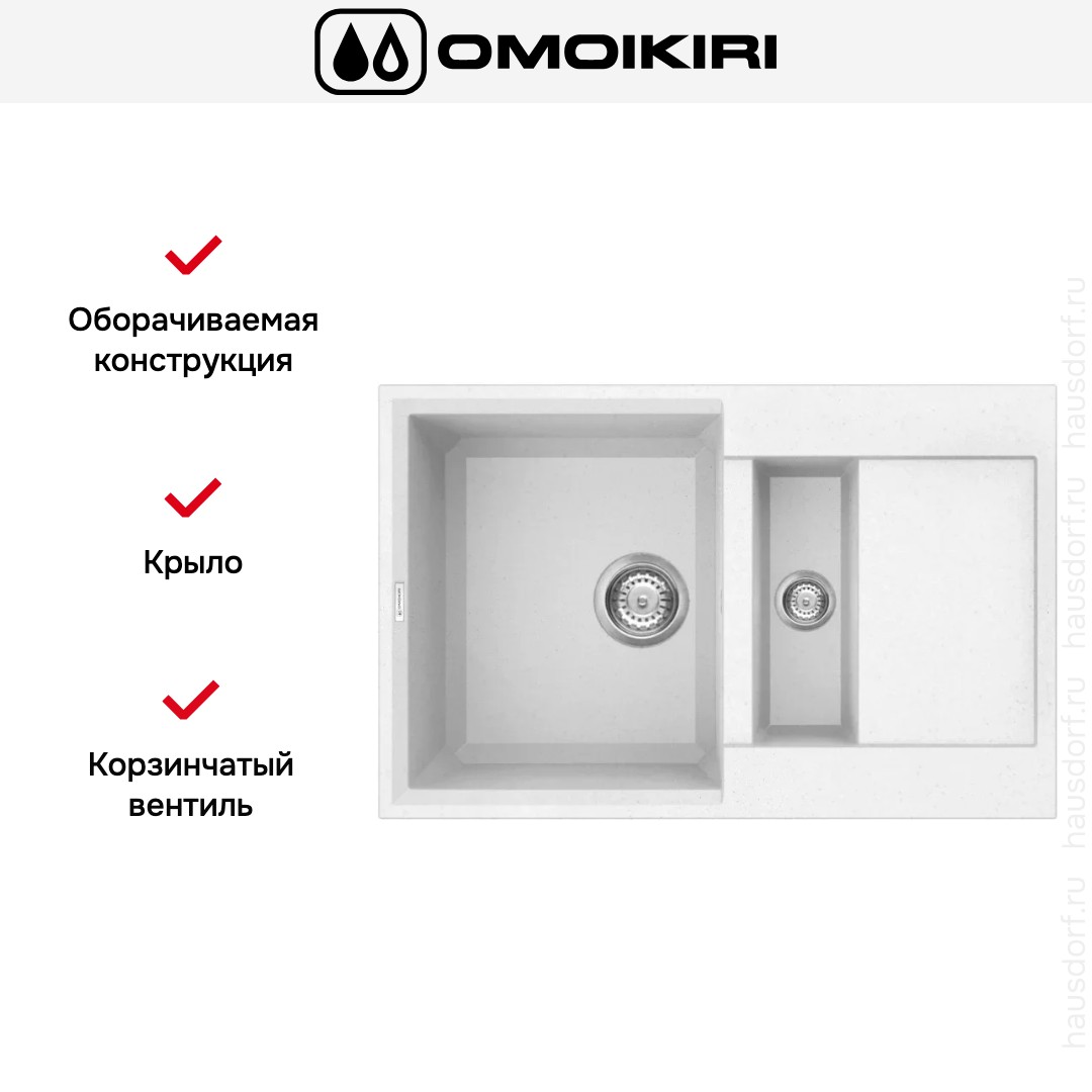 Обратите внимание на дизайнерские отличия мойки Омойкири, которые помогут в создании идеальной кухни в вашем доме. Она выполнена в цвете белый. Крыло, расположенное слева или справа, является дополнительным рабочим пространством, на котором можно сушить посуду, разделывать мясо и нарезать овощи.
