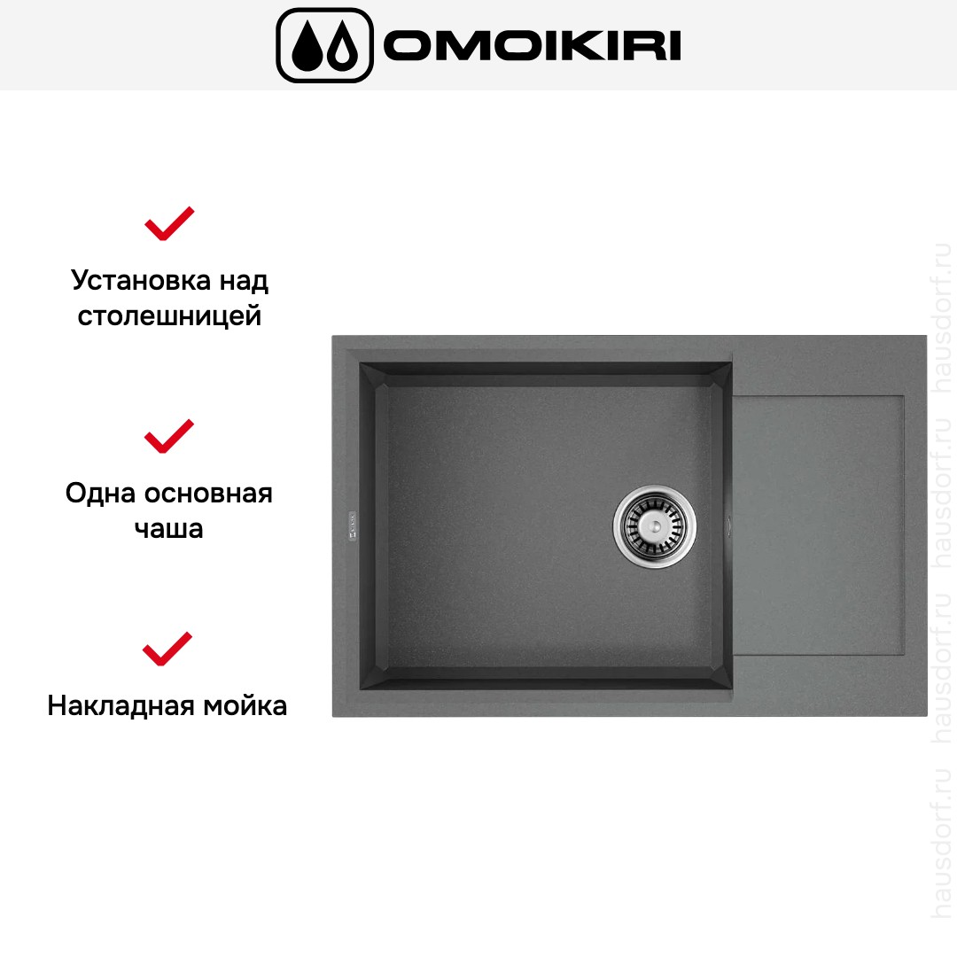 Обратите внимание на дизайнерские отличия мойки Омойкири, которые помогут в создании идеальной кухни в вашем доме. Она выполнена в цвете Серый Ленинград. Крыло, расположенное является дополнительным рабочим пространством, на котором можно сушить посуду, разделывать мясо и нарезать овощи.