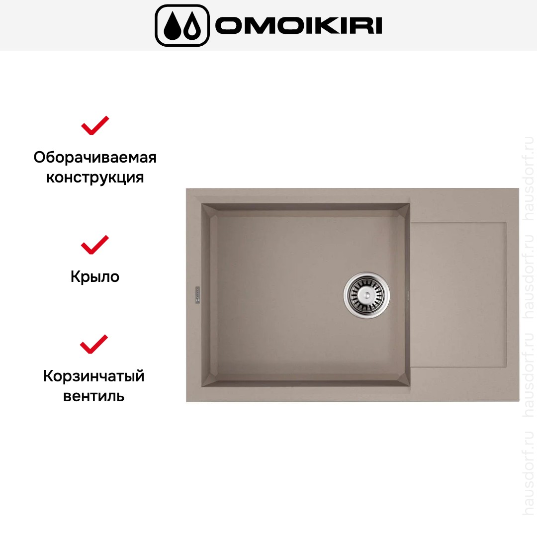 Обратите внимание на дизайнерские отличия мойки Омойкири, которые помогут в создании идеальной кухни в вашем доме. Она выполнена в цвете бежевый. Крыло, расположенное является дополнительным рабочим пространством, на котором можно сушить посуду, разделывать мясо и нарезать овощи.