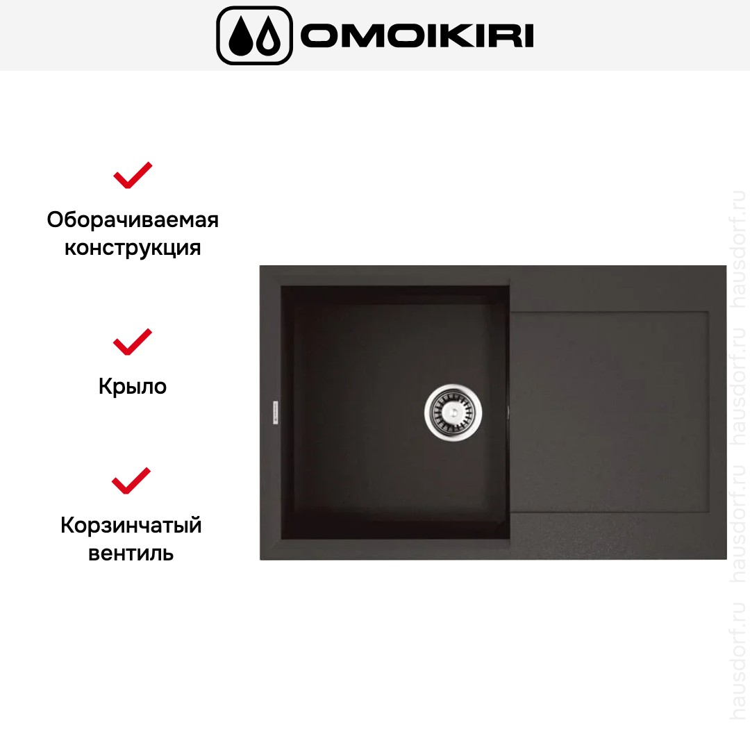 Обратите внимание на дизайнерские отличия мойки Омойкири, которые помогут в создании идеальной кухни в вашем доме. Она выполнена в цвете эспрессо. Крыло, расположенное является дополнительным рабочим пространством, на котором можно сушить посуду, разделывать мясо и нарезать овощи.