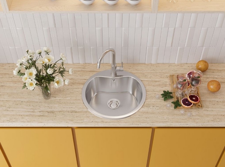 Круглые и овальные мойки смотрятся эффектно и стильно, у них отсутствуют углы, так что уход не составляет труда. При одинаковом объеме круглая мойка будет казаться меньше, чем квадратная. Такие модели часто используют в классическом интерьере. Установка такой мойки требует круглого отверстия в столешнице, что также достаточно просто сделать. Угловые мойки позволяют заполнить пространство в углах, экономя место в помещении. Раковины в них могут быть различной формы, а место за мойкой можно использовать для хранения. Мойки в форме трапеции выглядят свежо и оригинально, но подойдут не для всякого интерьера.