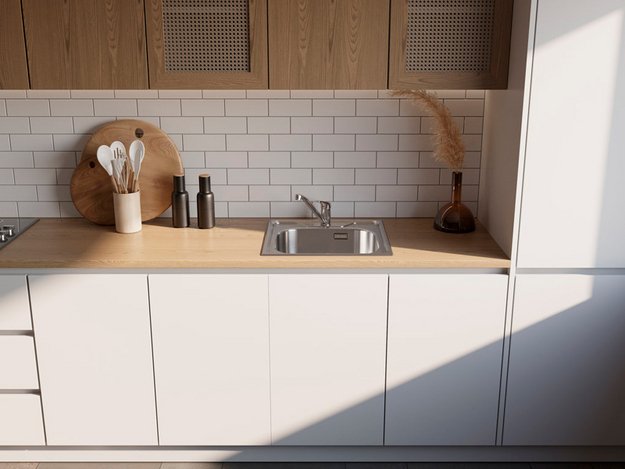 вровень со столешницей — создается ощущение бесшовного пространства, а если мойка сделана из того же материала, то и единого дизайна;