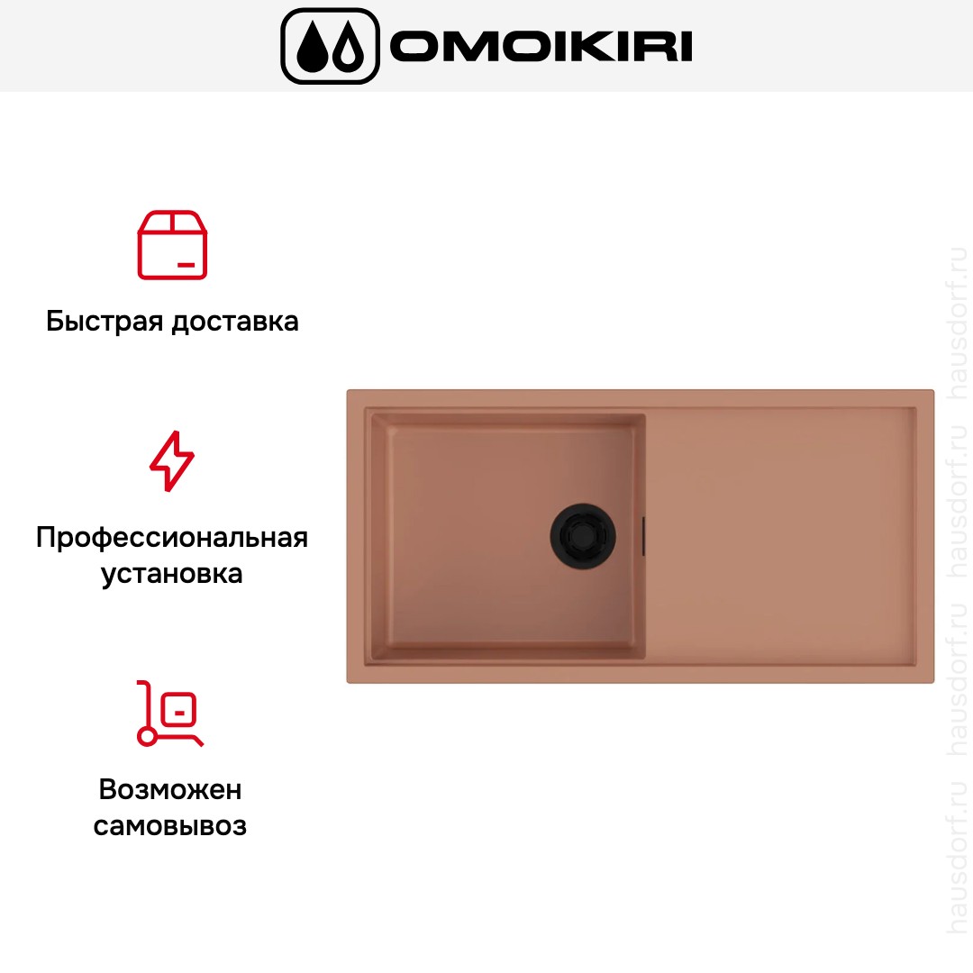 Обратите внимание на дизайнерские отличия мойки Омойкири, которые помогут в создании идеальной кухни в вашем доме. Она выполнена в цвете красно-коричневый. Крыло, расположенное слева, является дополнительным рабочим пространством, на котором можно сушить посуду, разделывать мясо и нарезать овощи.